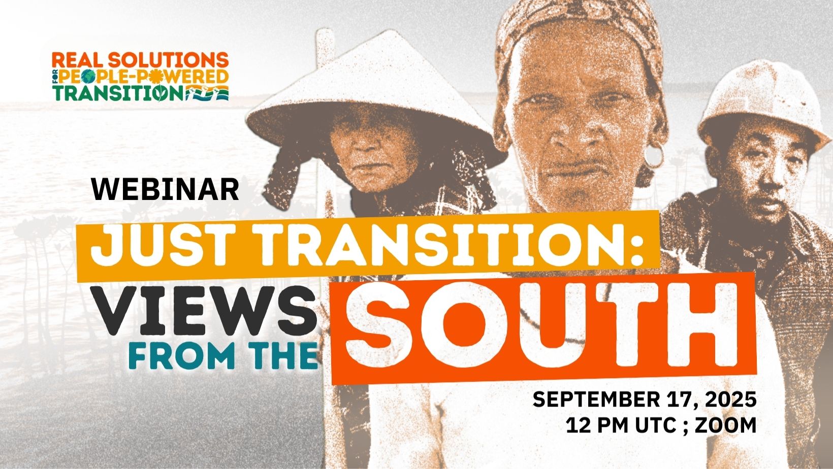 This webinar will explore how communities in the global South are bringing the vision of a Just Transition to life through Real Solutions that repair and prevent harms, restore ecosystems, and challenge the structural drivers of climate and social injustices. From collective land stewardship and defending Indigenous territories to resisting extractive industries, they are reclaiming power from corporate control over their lands, waters, forests, and lives and reshaping a future that is powered by the peoples.